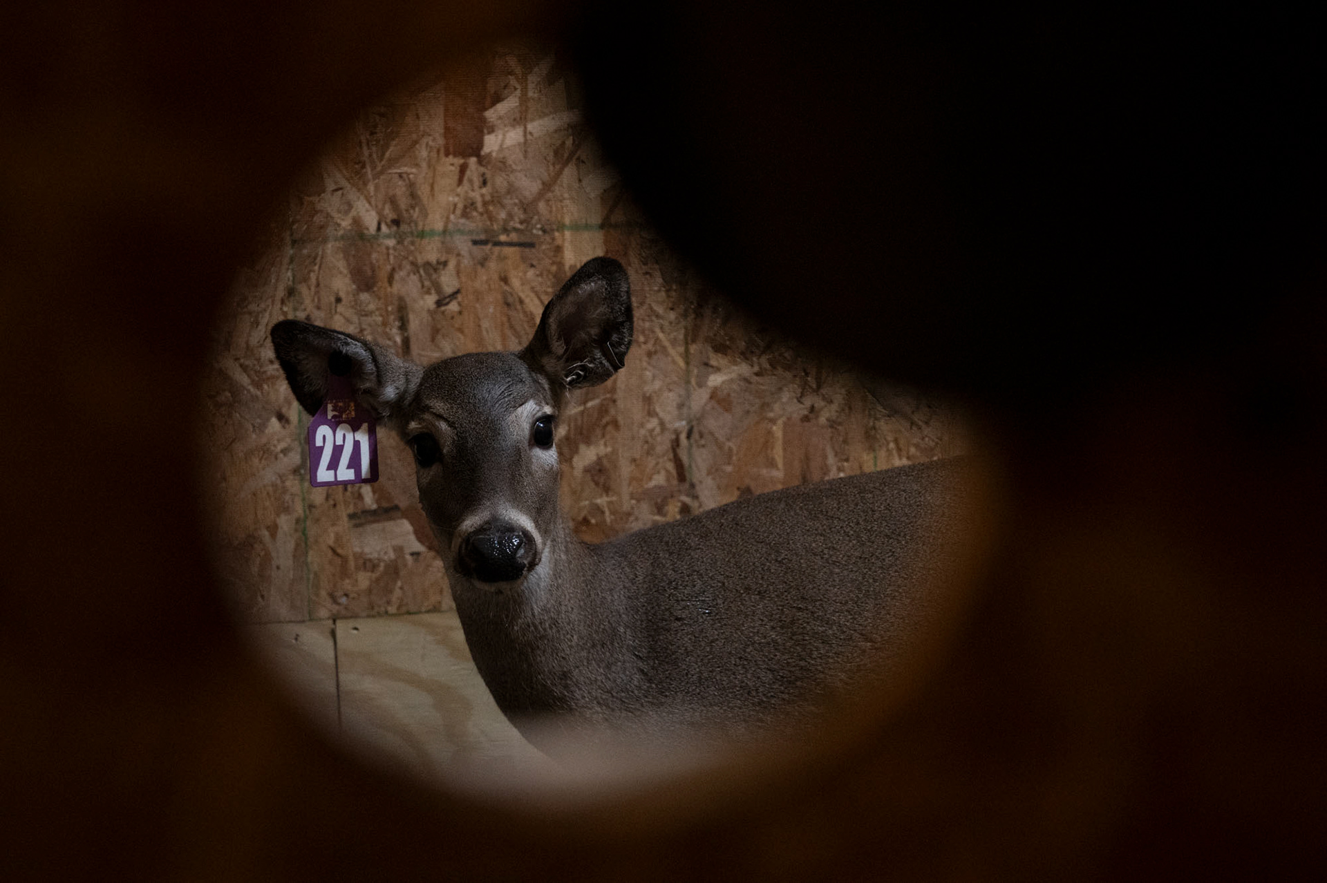 In the Major League Whitetails facility on fisher road in Athens, Ohio a deer with a purple tag reading 221 looks toward a small opening in the wall of a containment room. This deer would be among the first in a process known as artificial insemination.