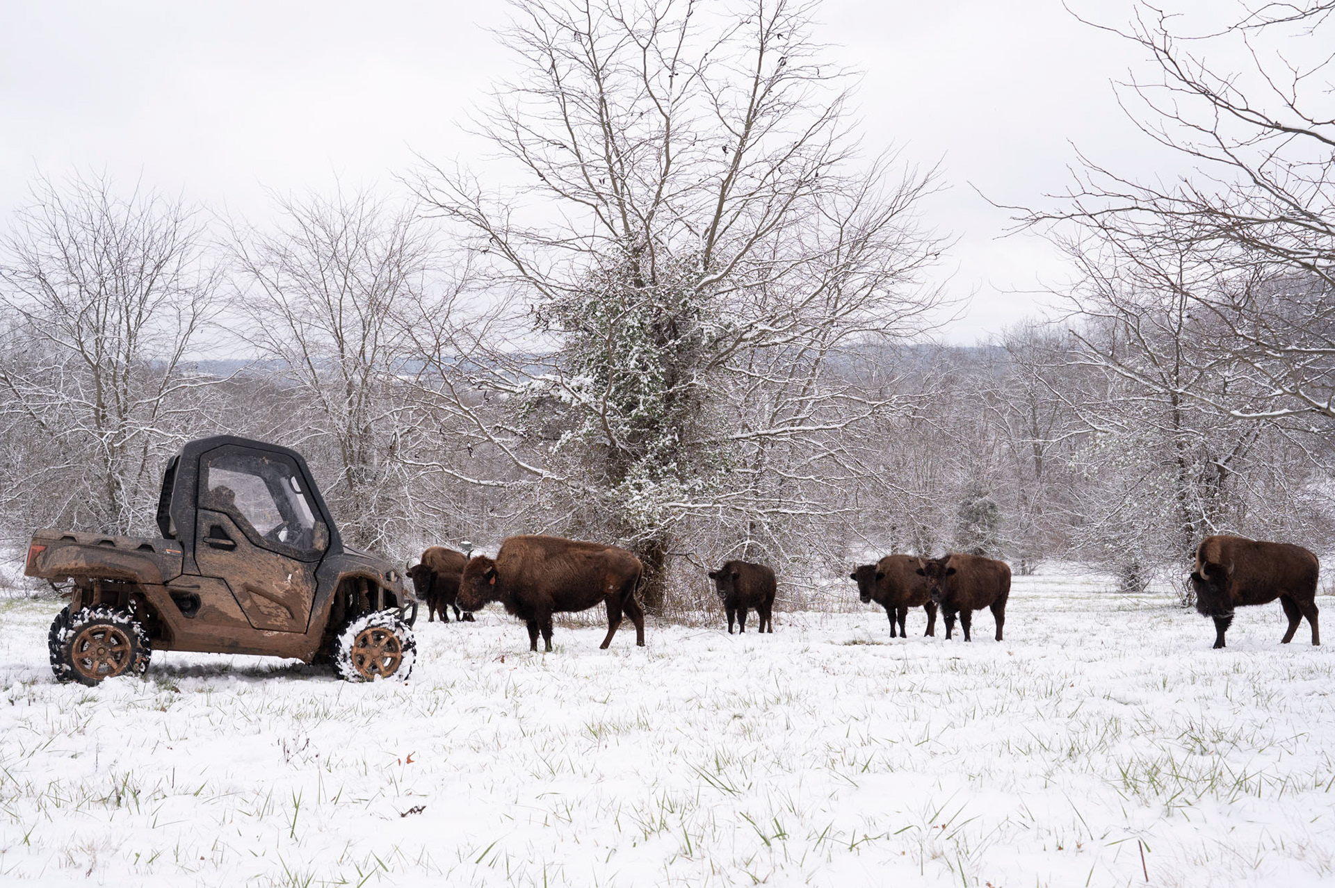 While moving through the bison enclosure the path is briefly blocked by the seven bison that are kept at Double Play Hunting Preserve, located on Fisher rd in Athens, Ohio.