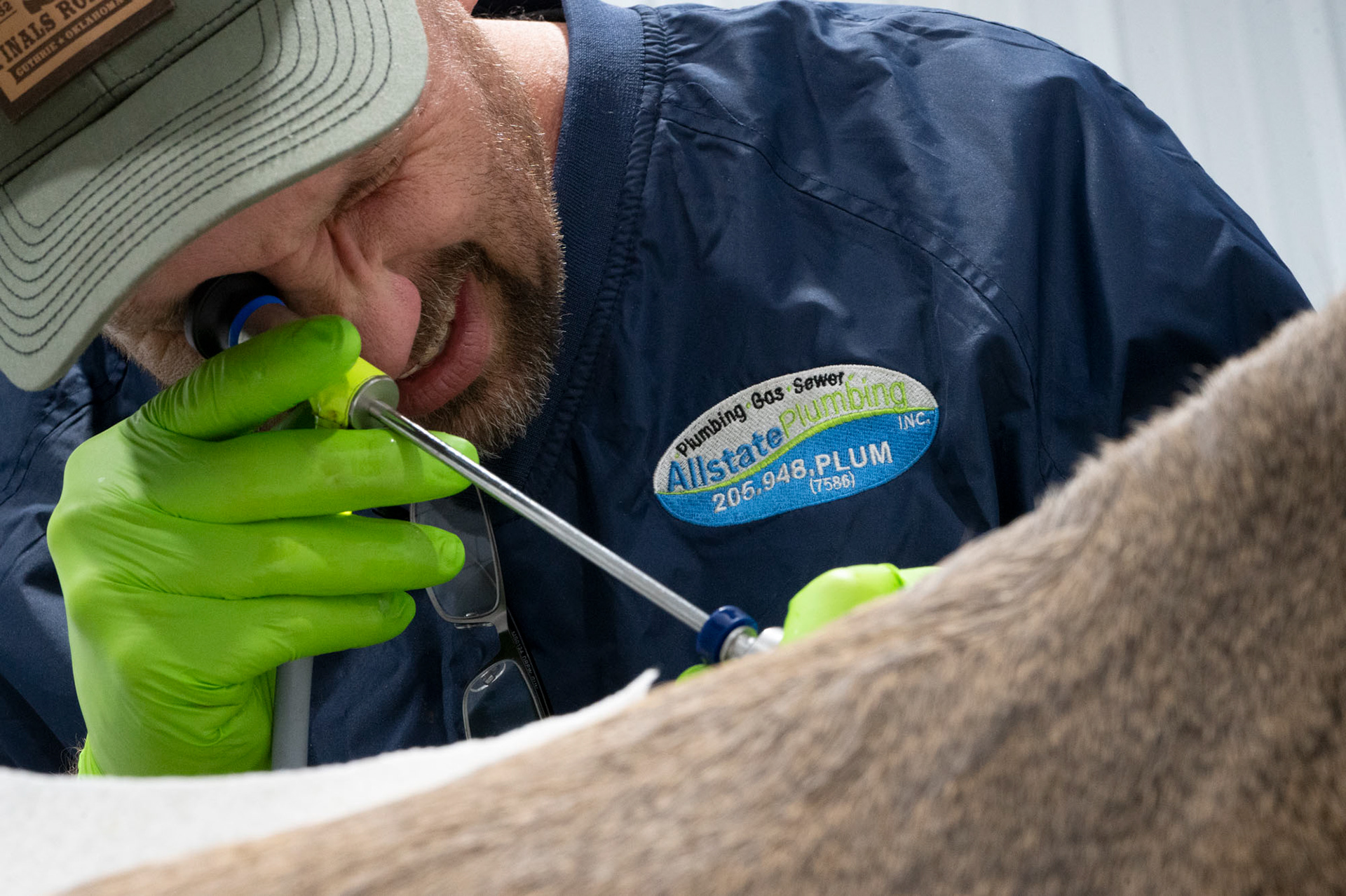 Jason Coe, owner of Advanced Deer Genetics, examines the ovaries before injecting the chosen buck sperm, and completing the Artificial Insemination process.